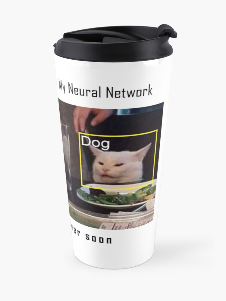 Funny Ai Woman Yelling At A Cat Meme Design Machine Learning Travel Coffee Mug For Sale By Omolog Redbubble